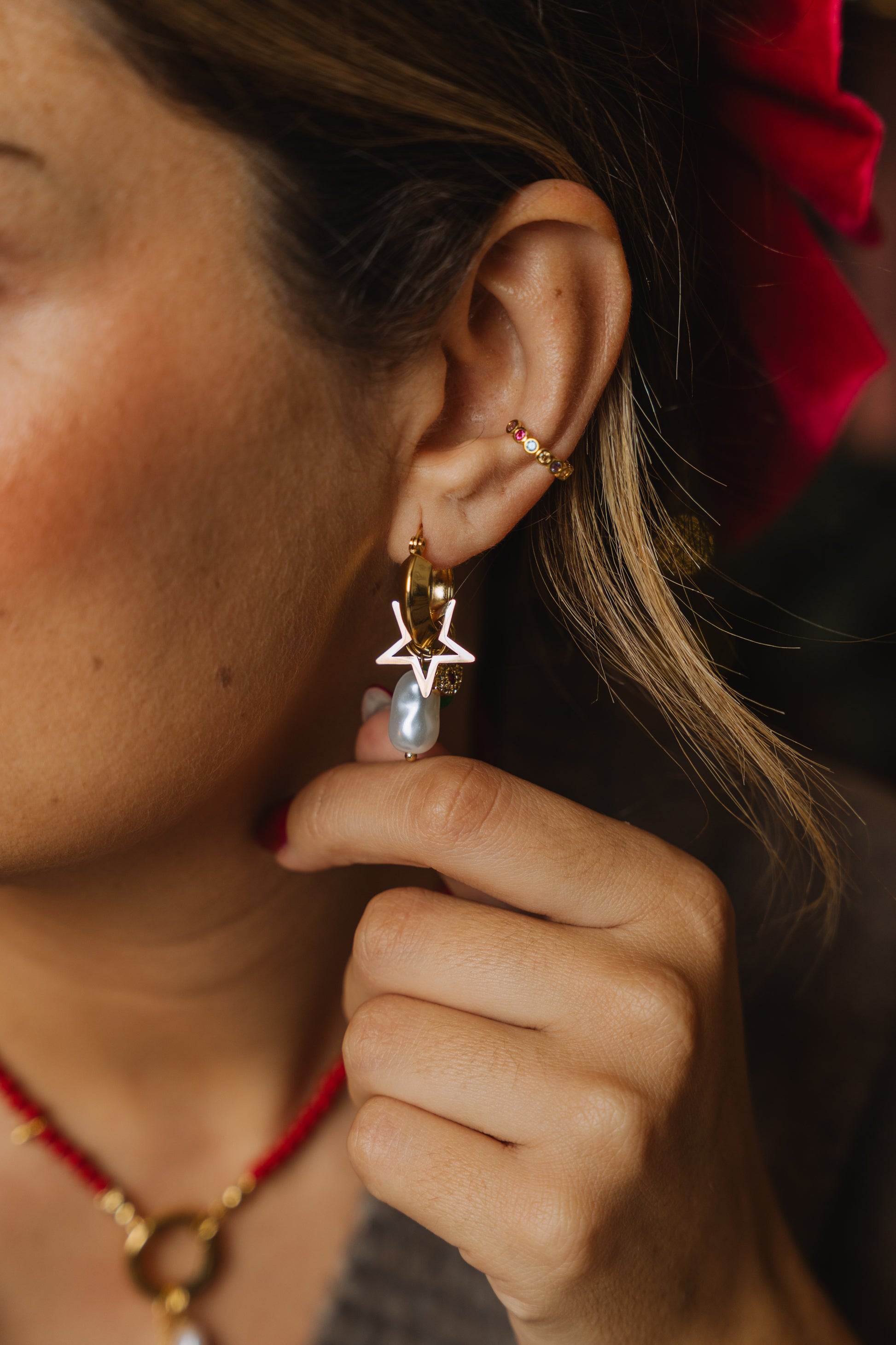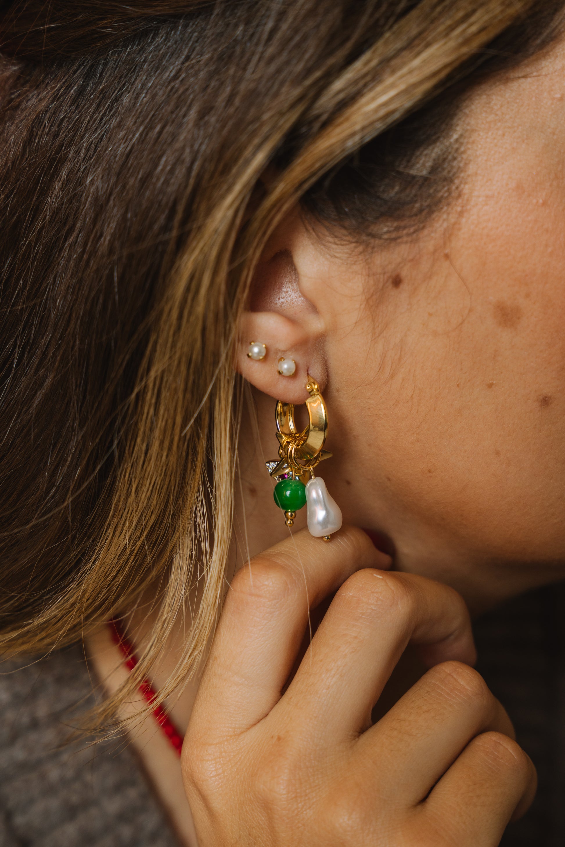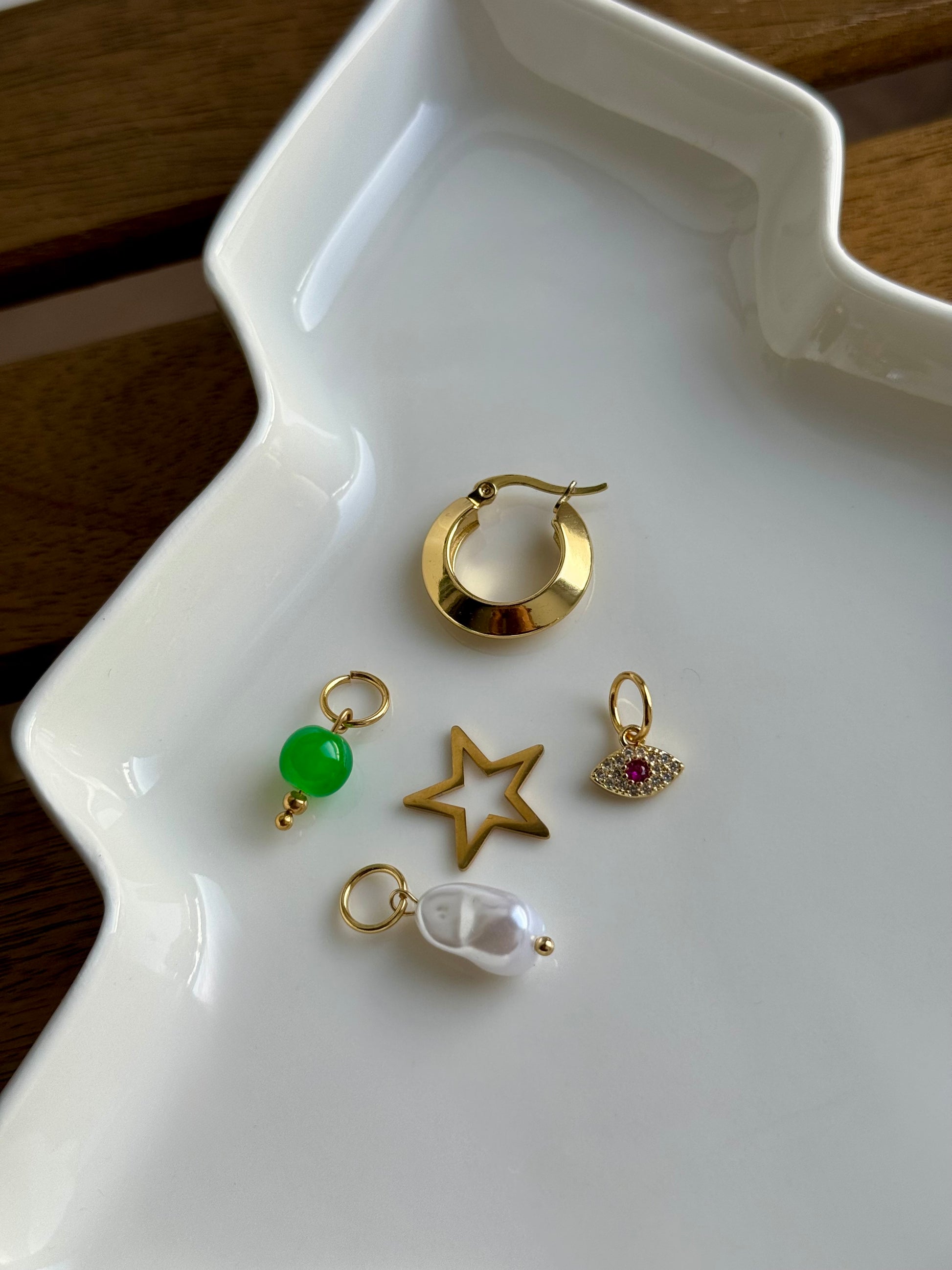 Argolas em aço inoxidável com vários pendentes removíveis, oferecendo múltiplas formas de usar: com ou sem os pendentes.